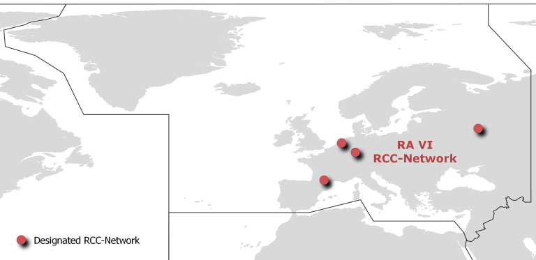 In Regional Association VI (Europe), an RCC-Network approach was adopted to leverage the extensive expertise and technical capacities of the more than 50 RA VI Member countries. At its 15th session in September 2009, RA VI (Europe), through Resolution 1 (XV-RA VI), implemented the RA VI RCC-Network with the initial structure as detailed in the implementation plan for the Network. Each of the nodes is supported by a consortium of NMHSs.