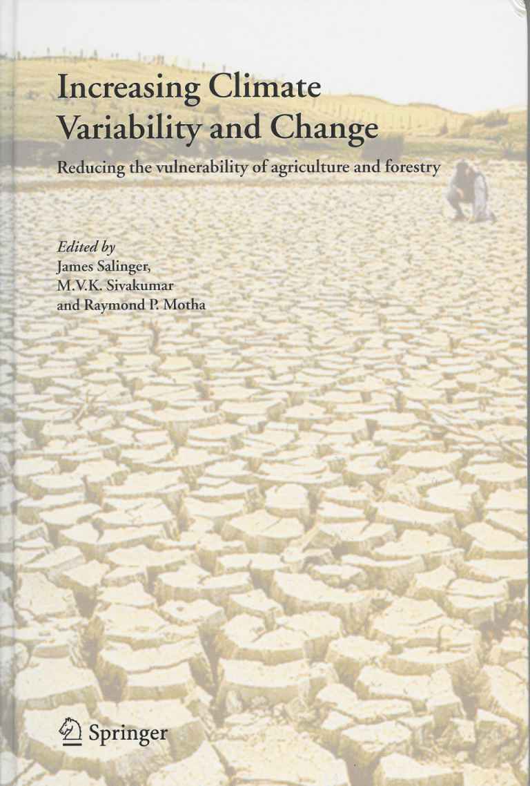 | Increasing Climate Variability and Change: Reducing the vulnerability of agriculture and forestry. 2005. Edited by James Salinger, M.V.K. Sivakumar and Raymond P. Motha. Reprinted from Climatic Change, Volume 70, Nos. 1-2, 2005. Springer. 362 pages. Link to Springer ordering information | | Click to enlarge image |