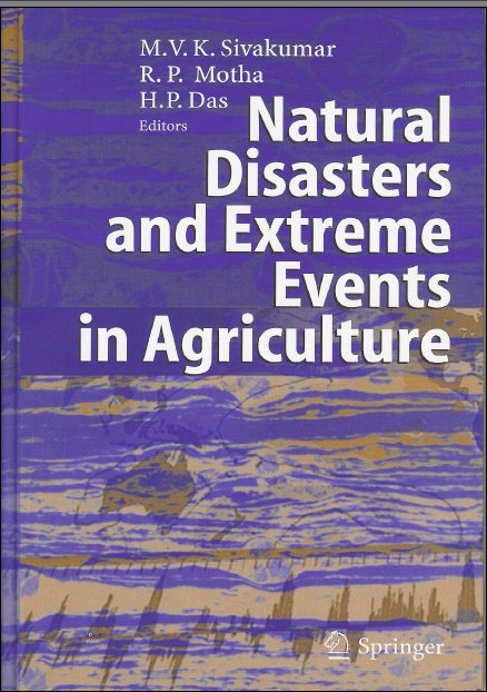 | Natural Disasters and Extreme Events in Agriculture: Impacts and Mitigation. 2005. Proceedings from a CAgM Expert Team Meeting, 16-20 February 2004, Beijing, China. Edited by M.V.K. Sivakumar, R.P.Motha, and H.P. Das. Published by Springer-Verlag. 367p. Link to Springer ordering information | | Click to enlarge image |