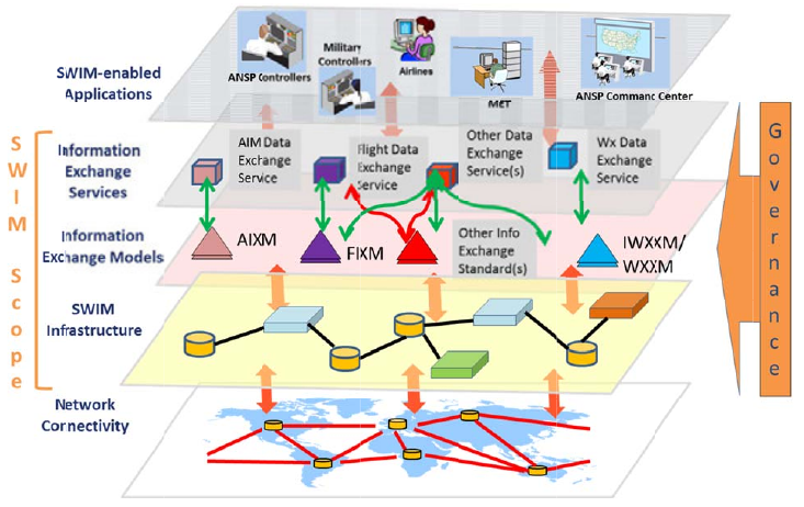 - Information Exchange Services: the SWIM-enabled applications will use information exchange services for interaction.