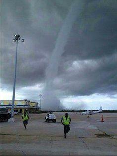 Funnel clouds, manifesting as water spouts (over water) or tornadoes (over land), can develop in extreme cases. They are caused by the reduction of pressure at the centre of the vortex. A tornado is a violently rotating storm of small diameter that is produced in a very severe thunderstorm. The funnel cloud extends from the base of a CB to the ground. A water spout occurs over water and its behaviour is characterized by a tendency to dissipate upon reaching shore.