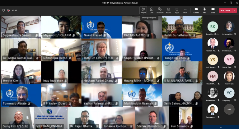 The 5th Hydrological Advisers Forum for Region II (Asia) was held virtually through videoconference on 15 December 2022. Dr. Sung Kim, Regional Hydrological Adviser for RA II chaired the meeting which saw the participation of Hydrological Advisers and other experts from 15 Members in the region along with the staff from WMO.
