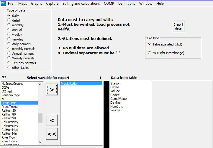 MCH - Meteorology, Climatology and Hydrology Database Management System