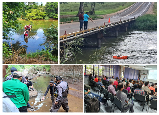 A key foundation for this achievement was the WMO-CRRH Hydrological Capacity Development Initiative, carried out from September to December 2023. This programme trained hydrologists across Central America, strengthening institutions throughout the hydrology value chain – from observations to the refinement of prediction models. Six organizations, including WMO Regional Training Centres, universities, expert networks, NMHSs, and international centres, mobilized 11 expert trainers. Together, they reached 320 professionals and technicians from National Hydrological Services through 22 in-country training sessions. Four hybrid regional workshops brought 158 participants together to exchange technical experiences, lessons learned and good practices. A Moodle virtual classroom supported the delivery of four training modules.