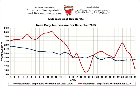 The mean temperature of the month was 21.3°C which is 1.6°C above the long-term normal for December, and this goes on record as the seventh highest mean temperature for December since 1902. This is the same as in December 2021. Note that the highest mean monthly temperature for December was 22.5°C recorded in 2001.