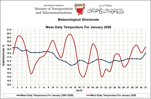 The month's mean maximum temperature reached 20.7 °C, which is the same as the long-term normal. Note that the highest mean monthly maximum temperature for January was 23.6°C, recorded in 2024.