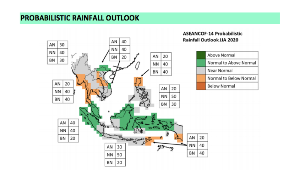 The ASEAN Climate Outlook Forum has issued its seasonal forecast for the summer monsoon season, June-July-August 2020 over Southeast Asia, taking into account the possible influence of the El Niño Southern Oscillation (ENSO) and the Indian Ocean Dipole (IOD) on the climate system over the region.