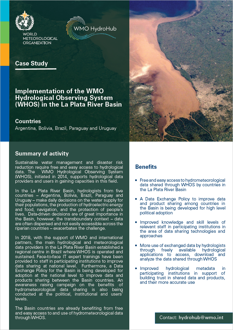 The WMO HydroHub Case Study on the WHOS implementation in the La Plata river basin is accessible here.
