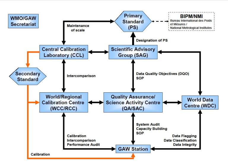 | Full traceability to the primary standard of all measurements made by Global, Regional and Contributing GAW stations. | |