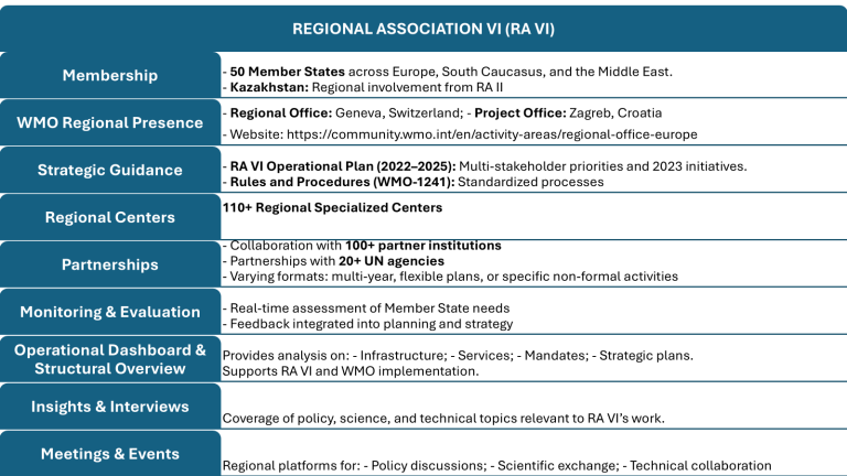 The WMO Regional Office for Europe serves the needs of the 50 Member States, covering Europe, South Caucasus, and the Middle East. The geographical diversity of the region introduces a wide range of climatic and meteorological challenges that have consequential impacts on society and the environment.
