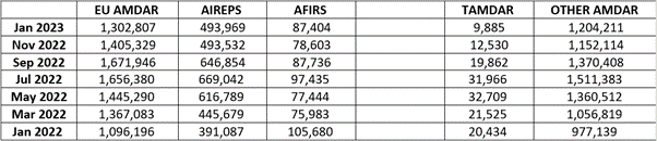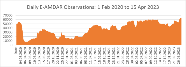 Regional program status and developmentsWMO Region I, Africa, ABO StatusKenya WMO, Kenya Meteorological Department (KMD) and Kenya Airways (KQ) have recently established a new agreement for the continued operation of the Kenya Airways AMDAR system for the period 2023 - 2024. This implementation arrangement provides for WMO to support the ongoing communications costs for the 2 B737 reporting aircraft, and also to allow for the expansion of the fleet to include equipping the rest of the KQ B737 and Embraer 190 fleet, subject to required funding becoming available to support both the implementation and communications costs. Ethiopia As reported in this newsletter, a meeting of the RA-I Task Team on Aircraft-Based Observations (TT-ABO) and a workshop on WICAP was held in Addis Ababa, Ethiopia in December 2022. Representatives of both Ethiopian Airlines and the Ethiopia Meteorological Institute (EMI) attended the workshop where there was enthusiasm shown by both parties to work towards future establishment of an AMDAR programme. Discussion continues between the parties and the Regional Office for Africa to establish a way forward to implement the programme, subject to funding availability to support the implementation and ongoing communications costs. EMI expressed an interest in developing a future capability to receive and process AMDAR data in-house. Morocco EUMETNET, Royal Air Maroc (RAM) and Météo Maroc have recently recommenced the process of integrating RAM into the EUMETNET E-AMDAR programme based on equipping RAM's B738 fleet. An initial equipping of 5 aircraft would be undertaken with a larger rollout to take place when plans for integrating the fleet into the E-AMDAR data optimisation system were complete. A timeline for this development is not yet established. WMO Region III, South America, ABO StatusSince December 2021, LATAM Airlines has halted AMDAR data provision for all its branches across South America. Hence, there are no operational airlines providing this data in RA-III currently. However, several meetings have been held with Avianca Airlines in order to start a new regional program in Region III under WICAP with support from the US-ABO program. TT-ABO III activities During Q1 2023, the Chairs of Task Team on Aircraft-based Observation for Region III (TT-ABO III) and Expert Team on Surface-based observations and WICAP for Region IV (ET-SBW) met several times to work together under a new WICAP program for the Americas. This collaboration will enhance data provision from new participating airlines and will improve ABO coverage in data sparse areas of Central and South America. Argentina (AR)-AMDAR Communications with Aerolíneas Argentina have been reestablished in Q1 2023. Changes in their aircraft avionics are required to install AMDAR onboard Software (AOS) and to report data under WMO No.1200 requirements. Brazil (BR)-ABO The Brazilian ABO program also has not escaped the effects of the pandemic and the resulting cessation of LATAM AMDAR provision (fig. 1). While ADS-C data delivery is increasing during austral summer, AMDAR data from former TAM airlines have fallen to zero since January 2022.