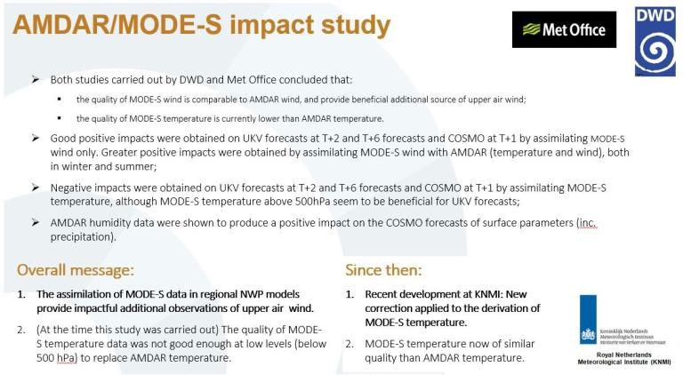 Moreover, the authors conclude AMDAR Temperature and Wind data are among 4-5 most important data sources for global assimilation across multiple NWP centers and endorse their continued support because they are: