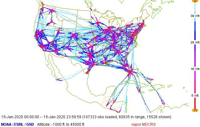 Thousands of meteorological reports are taken daily by commercial aircraft providing atmospheric profiles with greater temporal density and at more locations than the operational radiosonde network.  These reports are available through two largely complementary systems, the freely available Airborne Meteorological DAta Relay (AMDAR) and the commercially available Tropospheric Airborne Meteorological DAta Reporting (TAMDAR).  Both systems provide temperature and wind reports, but TAMDAR aircraft also measure relative humidity while a subset of AMDAR aircraft equipped with the Water Vapor Sensing System (WVSS) measure specific humidity.  Using a year-long set of Aircraft-minus-Radiosonde (AmR) comparisons, it was documented that AMDAR observations largely outperform TAMDAR reports for all parameters.  A more thorough discussion is available at the University of Wisconsin library here (and hereafter referred to as W&P.)